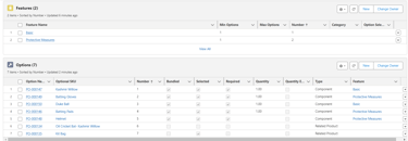 Optional SKU is a look up to the individual product ( Kashmir Willow). Link the product to the Basic Feature with Bundled, Selected and Required fields checked. The Type should be Component. Upon configuration of all, the related lists should look like this: